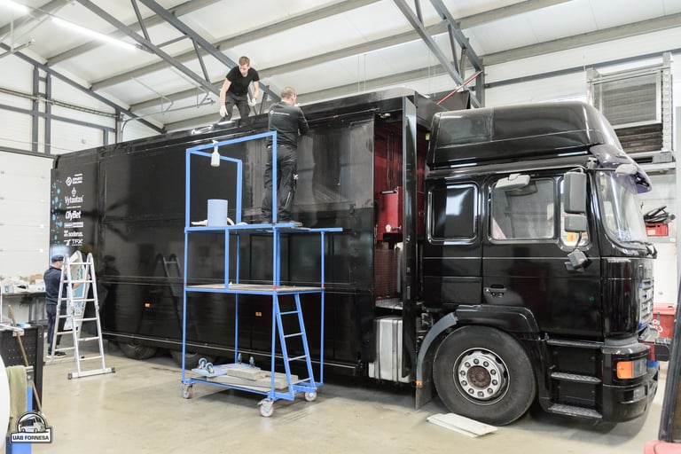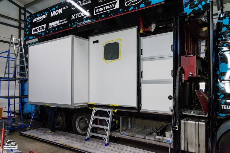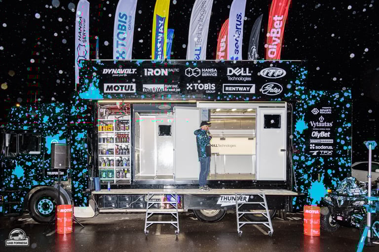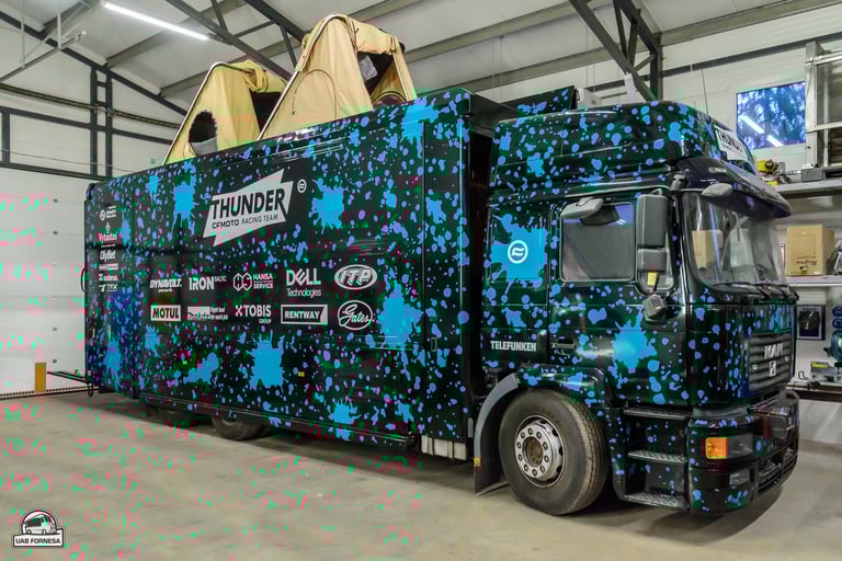 Kompanijai CF MOTO įrengėme lenktynių aptarnavimo sunkvežimį kuris jau sudalyvavo Dakaro ralyje. Buvo priimta ir įgyvendinta begalė įdomių naudingų sprendimų.
