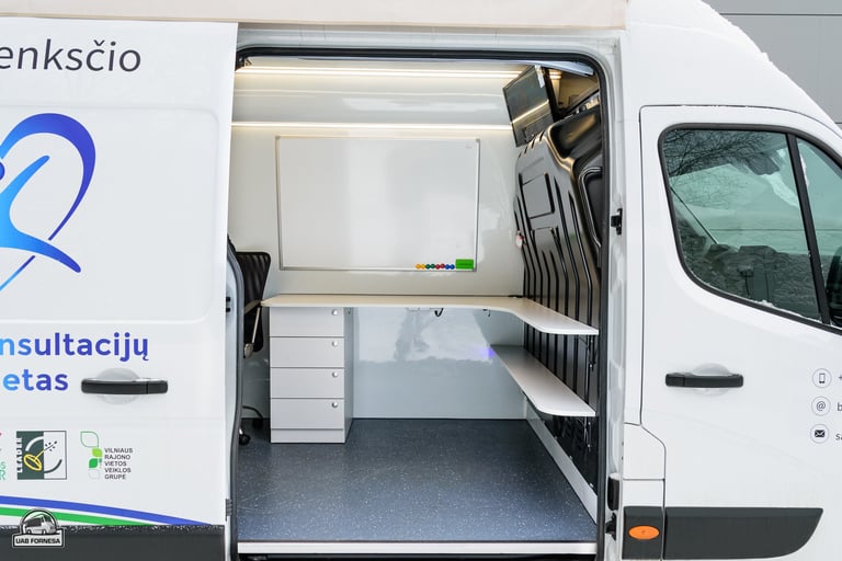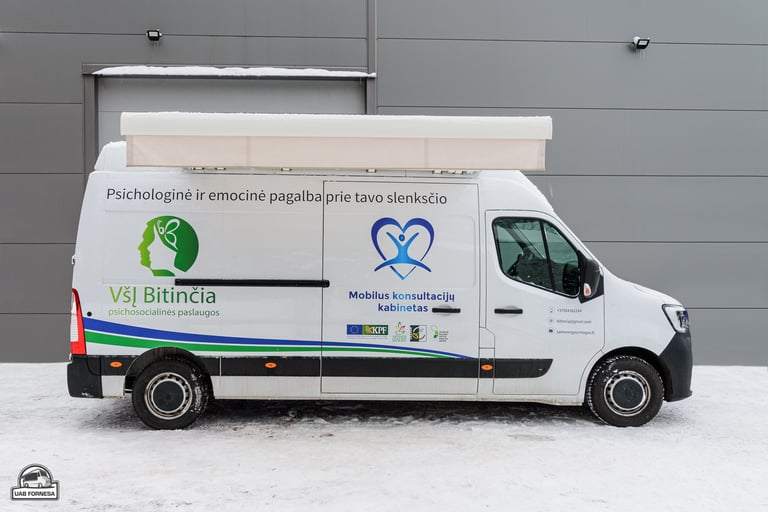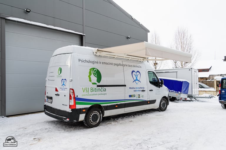 Mobilus konsultacijų kabinetas ant ratų. VšĮ "Bitinčia" teikia mobiliaus psihologinio kabineto paslaugas atokiau gyvenantiems žmonėms.